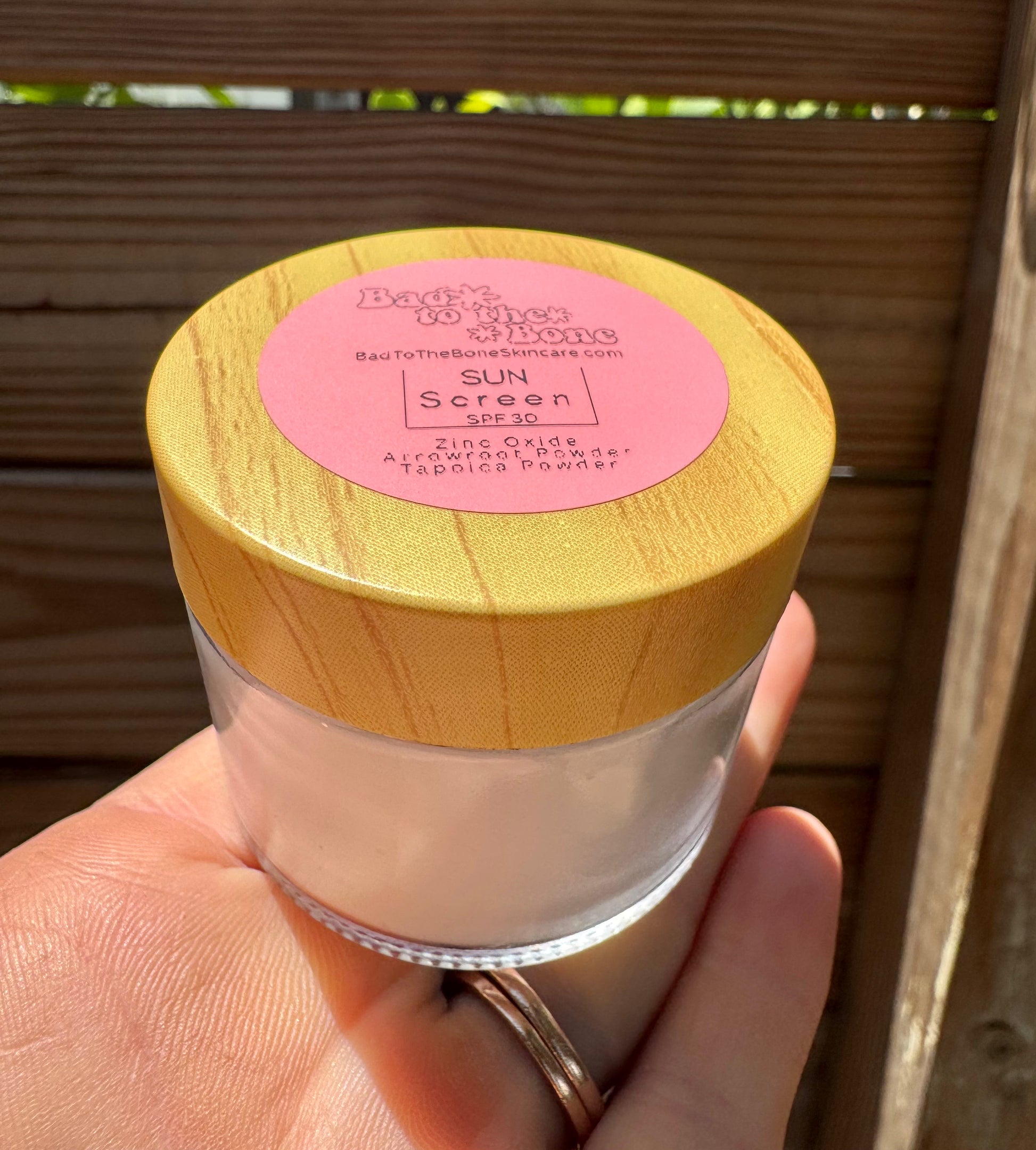 Your ultimate powder mineral sunscreen! SPF 30 and so easy to apply. Just grab your favorite loose powder brush and voilà, a little bit goes a long way! Applies in a matter of seconds which makes it wonderful for kids too! Only three ingredients; organic zinc oxide, organic arrowroot powder, and organic tapioca powder. Your new Summer time go-to ✨☀️